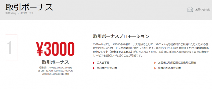【XM(XMTrading)】が人気である理由に、この口座開設取引ボーナスや、入金時のボーナス、更にはポイント制度など魅力あるボーナスが充実している点も大きいです。