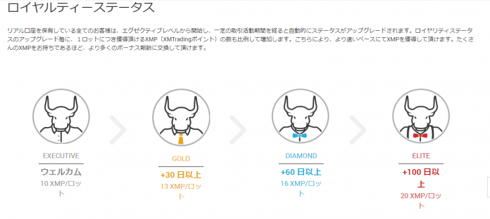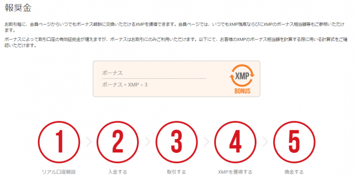 これは取引を行うことにより、ポイント(XMPと呼びます)が貯まり、現金もしくは取引に使えるボーナスとして活用することが出来ます。