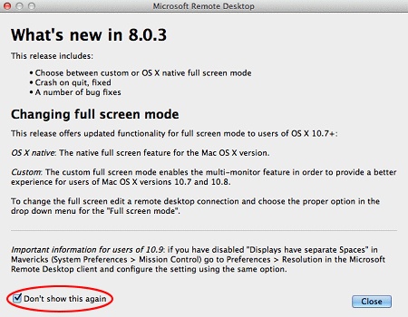 以下のような案内が接続毎に表示されますが、左下のチェックボックスにチェック・閉じることで、次回以降表示されなくなります。